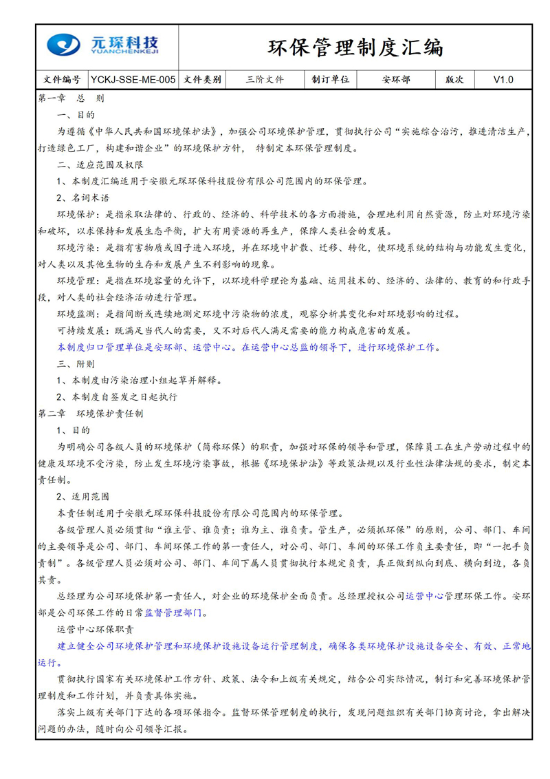 环保管理制度汇编